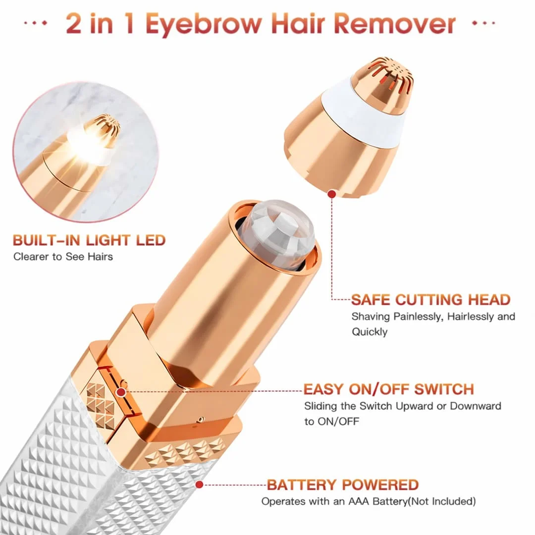 • 2-in-1 Hair Removal Device – Facial hair remover & eyebrow trimmer