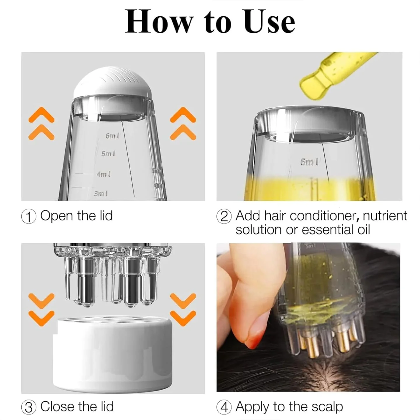 • 2-in-1 applicator and massage comb for oil delivery + scalp stimulation