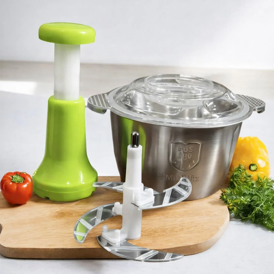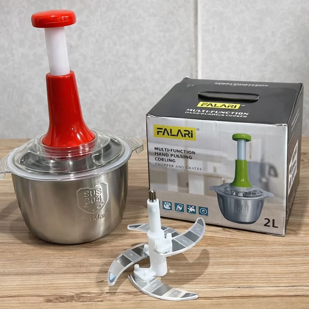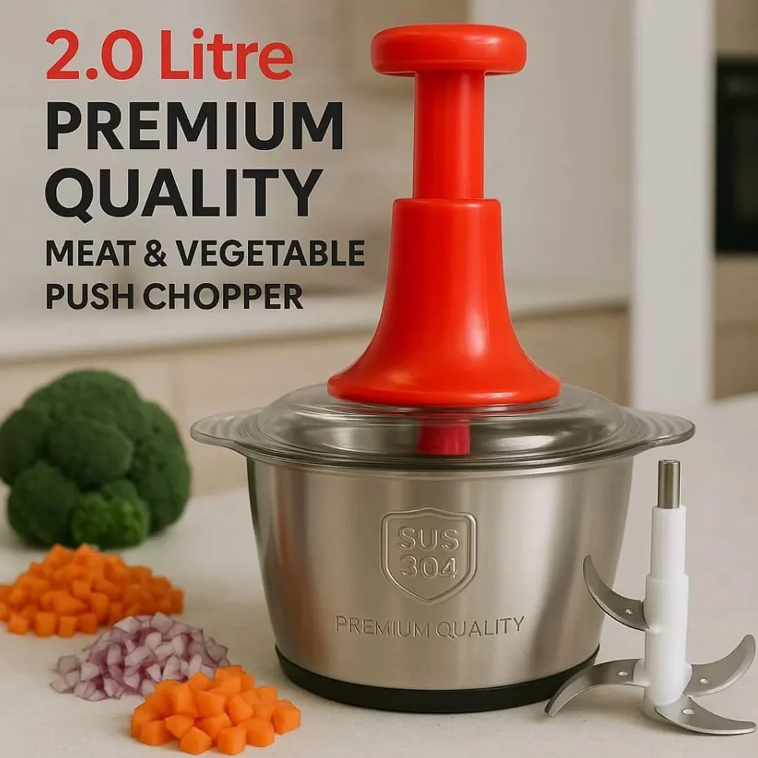 Simplify your kitchen prep with the 2L Manual Stainless Steel Food Chopper, designed for fast, efficient, and hassle-free chopping. Built with a durable stainless steel bowl and 4 ultra-sharp curved blades, it delivers consistent results for vegetables, fruits, meat, nuts, and more.