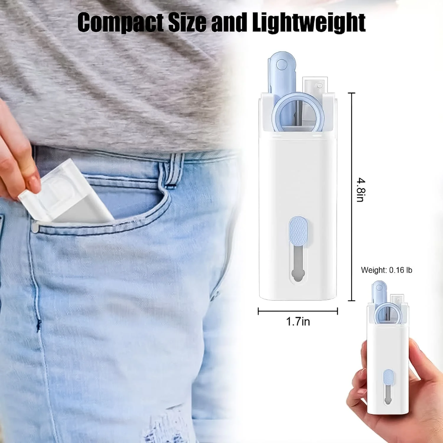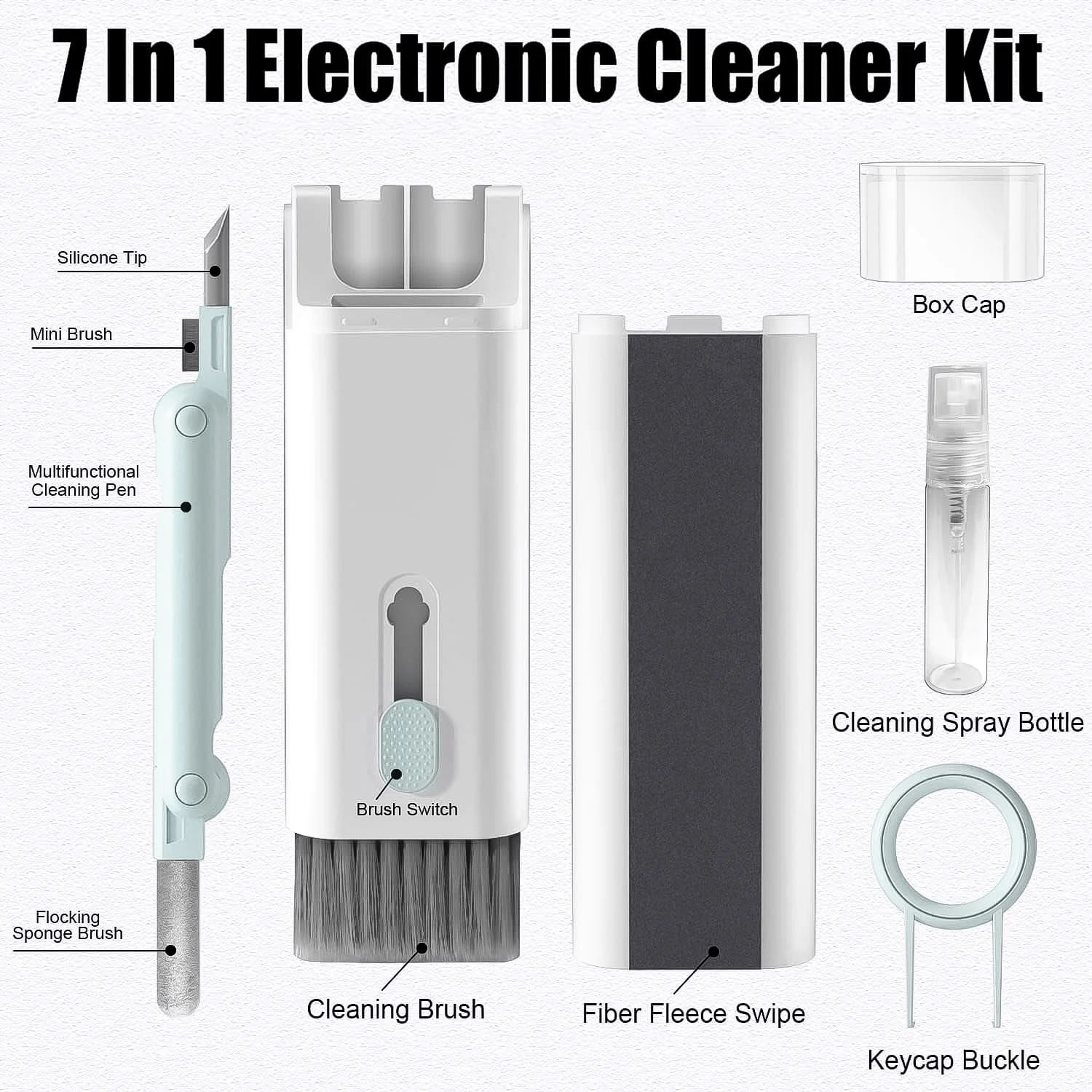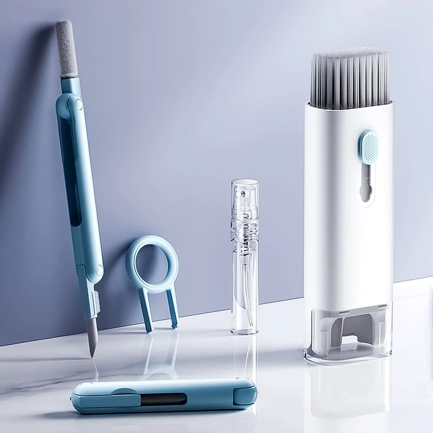 • Multi-Functional Cleaning Tools: Includes high-density brushes, soft sponge, foldable cleaning pen for AirPods, keycap puller, and a 5 ml spray bottle.
