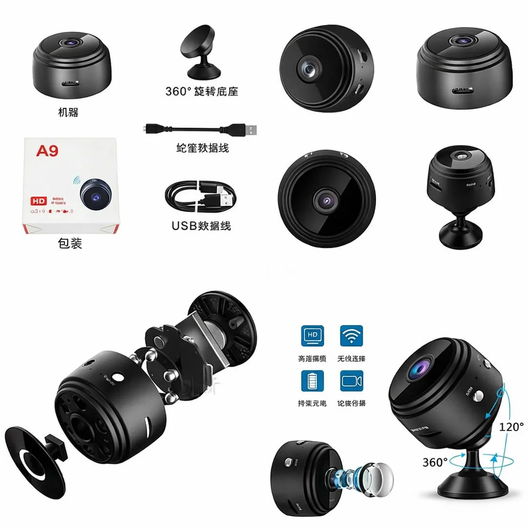 Protect your home, office, or personal space with the A9 1080P HD Magnetic WiFi Mini Camera, a compact yet powerful surveillance solution. Designed for discreet monitoring, this mini camera features Full HD recording, strong magnetic adsorption, and wide-angle coverage, making it ideal for home security, business monitoring, law enforcement, driving records, and cycling safety. With built-in WiFi connectivity and its own hotspot, the A9 camera allows real-time remote viewing through the HDSF App. Its advanced night vision technology ensures clear video capture even in complete darkness, while the lightweight and portable design makes it easy to install or carry anywhere.