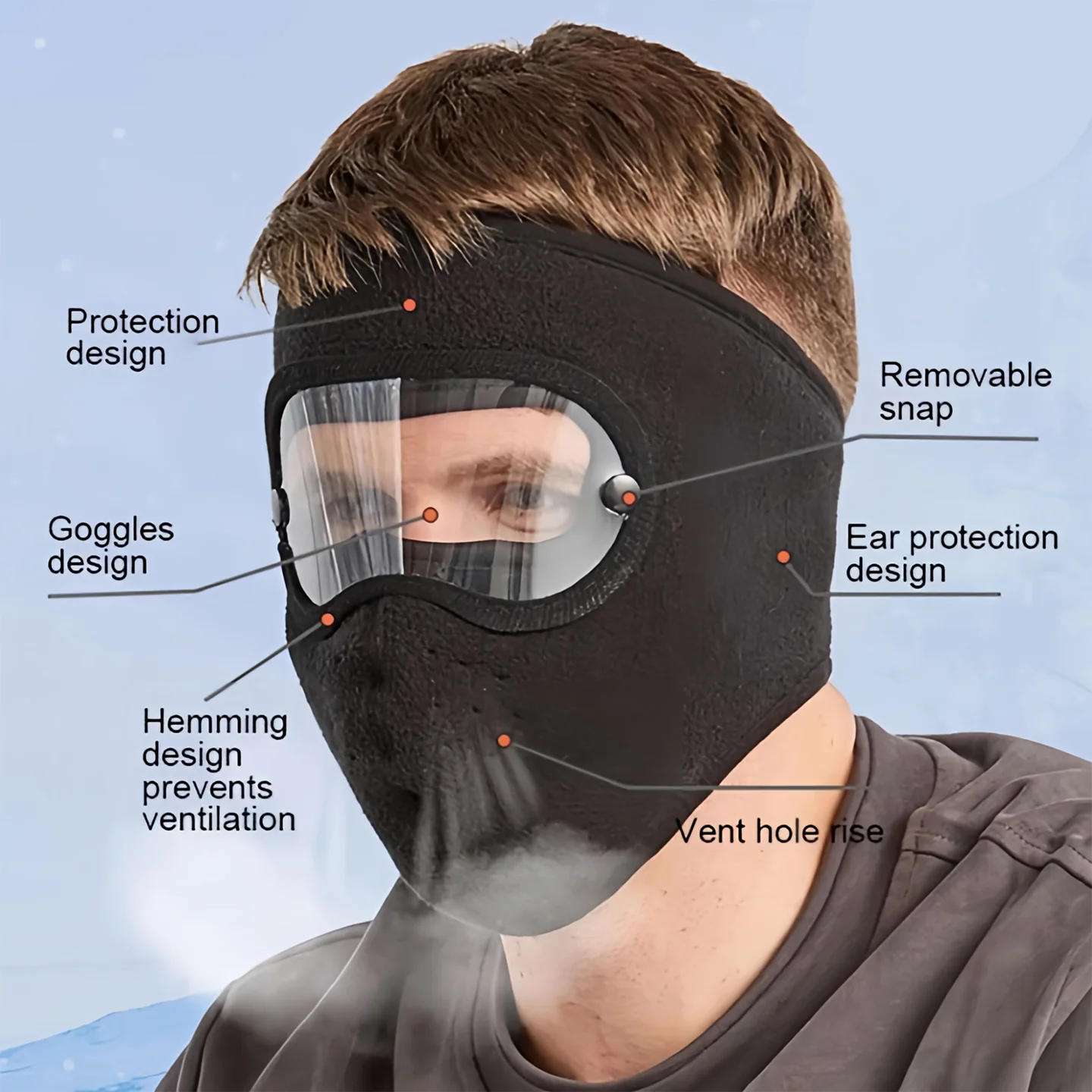 The integrated anti-fog goggles provide crystal-clear visibility even in freezing temperatures, while the ear protection design and vented breathing holes ensure maximum warmth without overheating. Designed with a removable snap system, you can easily detach the goggles when not needed.