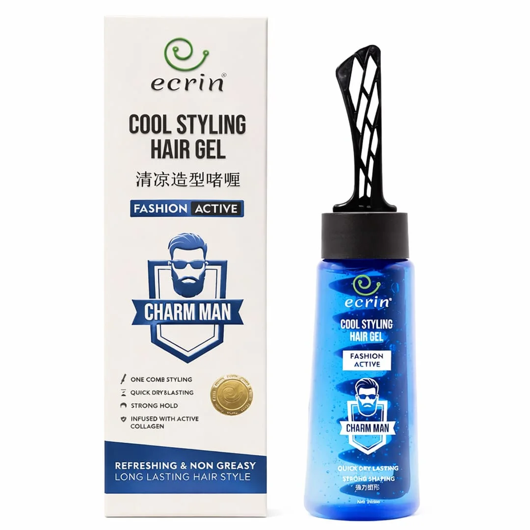 ECRIN Cool Styling Hair Gel 280ml – Strong Hold with Active Collagen & Cool Fresh Effect