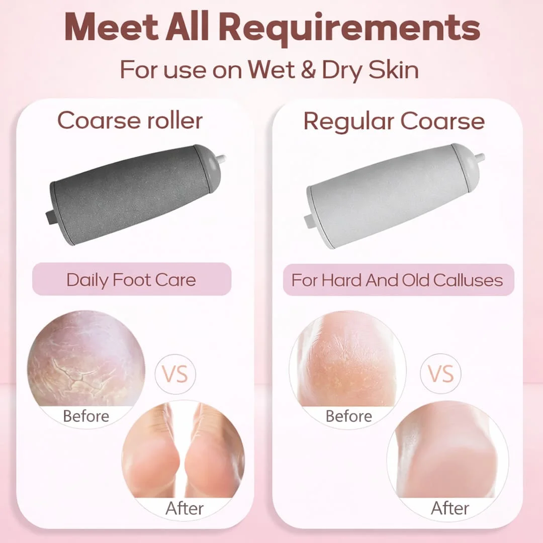 Achieve salon-smooth feet at home with the Flawless Pedicure & Callus Remover Tool, a rechargeable and cordless electric foot care device designed to safely remove calluses, dead skin, and rough patches. This advanced electric callus remover features multi-use roller heads that gently exfoliate hard skin while protecting healthy skin underneath.