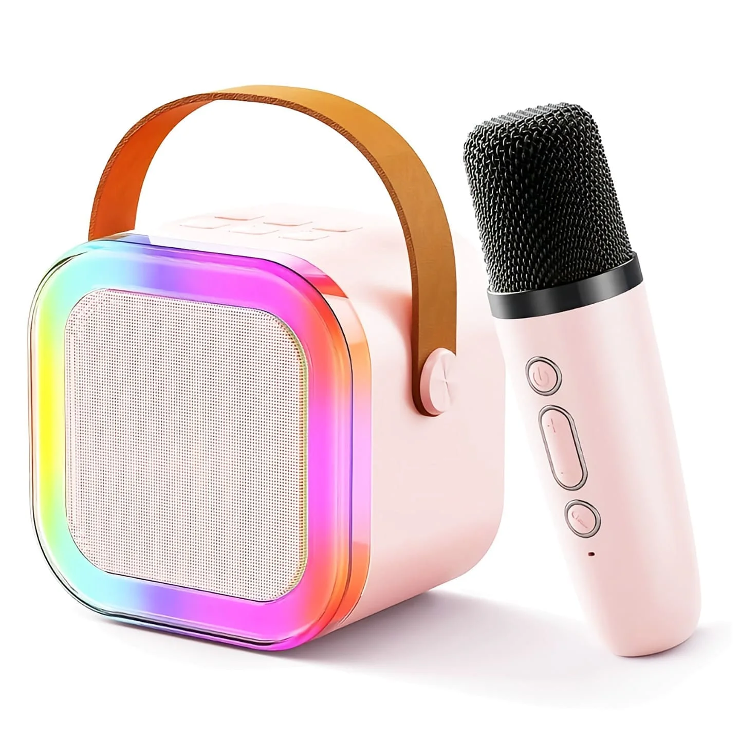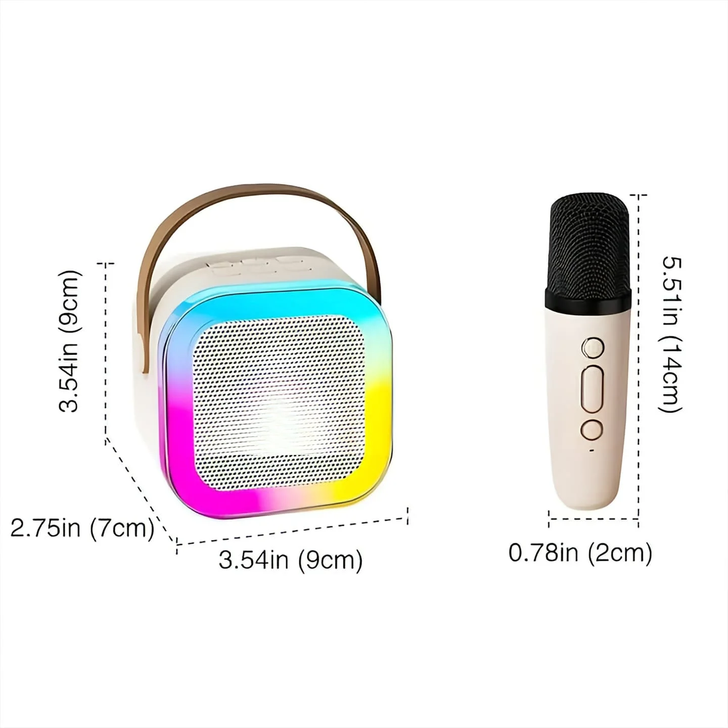 Enjoy singing anytime, anywhere with this Mini Karaoke Machine. Designed for parties, family fun, or casual home entertainment, it features a 10W HD speaker with bass diaphragm for clear, balanced sound. The system includes two wireless microphones and Bluetooth 5.1 connectivity for seamless pairing with smartphones, tablets, and laptops. Colorful disco lights and multiple voice effects add excitement to every performance, making it perfect for indoor or outdoor events. Lightweight and portable, this karaoke speakers is ideal for birthdays, celebrations, or spontaneous sing-alongs.