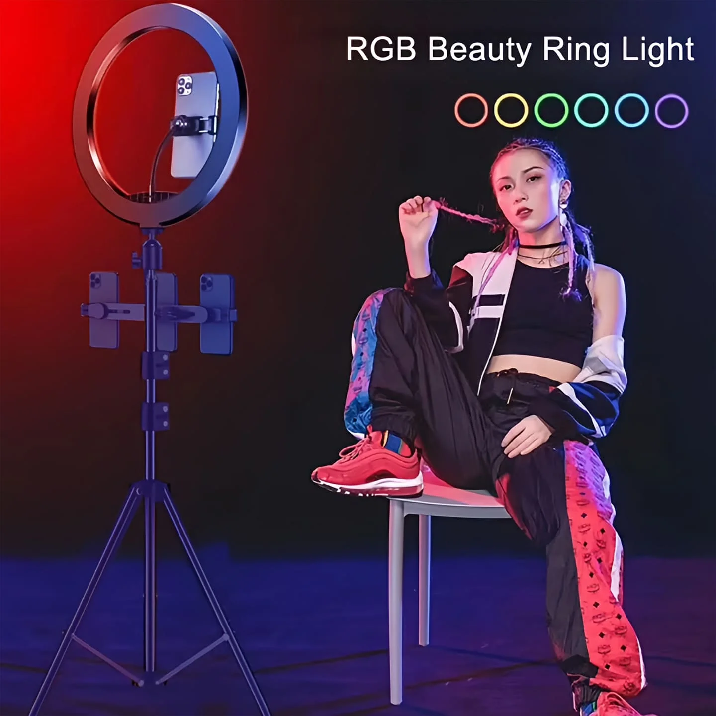 Featuring 16 RGB colors, 10 adjustable brightness levels, and dual color temperature control (3200K–6500K), this ring light helps you achieve the perfect lighting tone for every scene — from warm natural looks to cool cinematic effects.