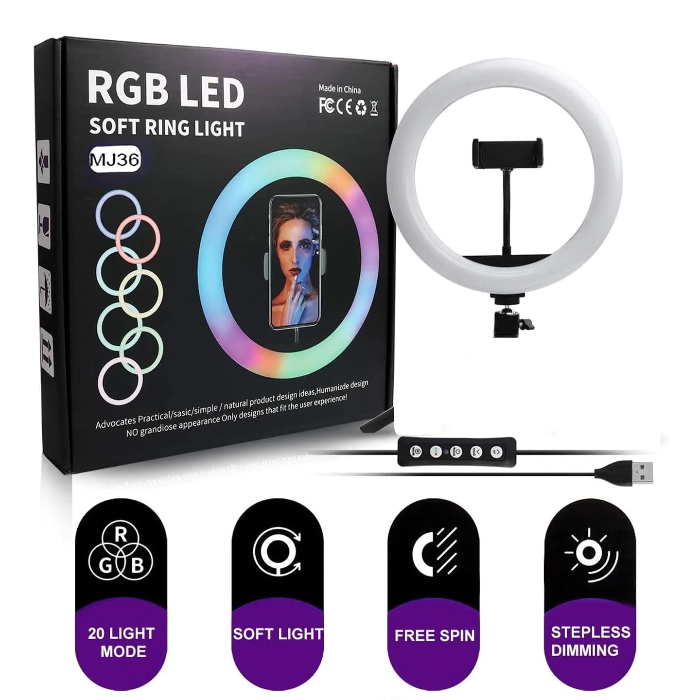 Brighten your videos, photos, and livestreams with the MJ26 RGB LED Ring Light (26cm / 10″) The perfect compact lighting solution for creators, vloggers, and makeup enthusiasts.
