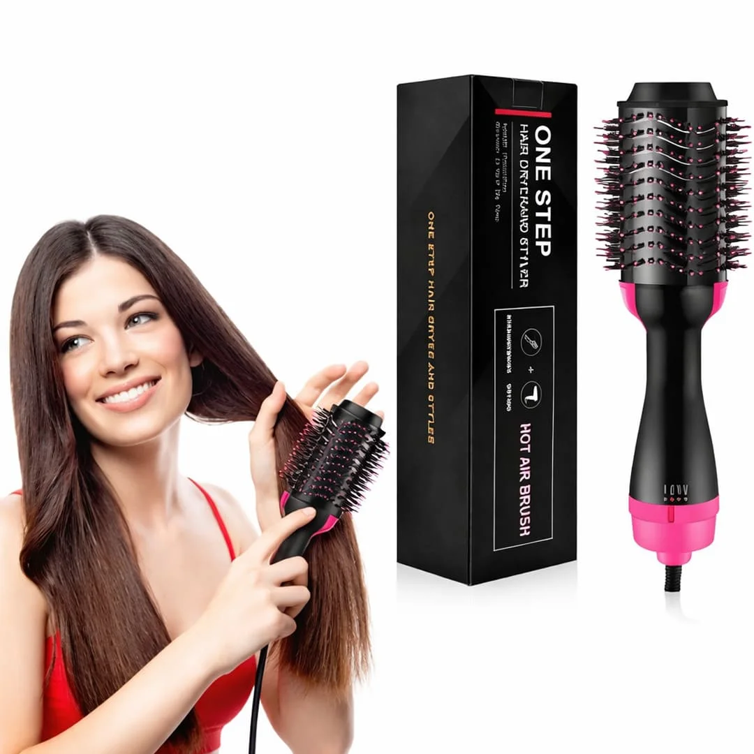 The One Step Hot Air Brush is a powerful 3-in-1 hair styling tool designed to dry, straighten, and volumize your hair in a single step. Ideal for all hair types, it delivers salon-quality results at home while saving time and effort. Its ergonomic design and advanced heat technology help create smooth, frizz-free, shiny hair with natural volume and soft curls.