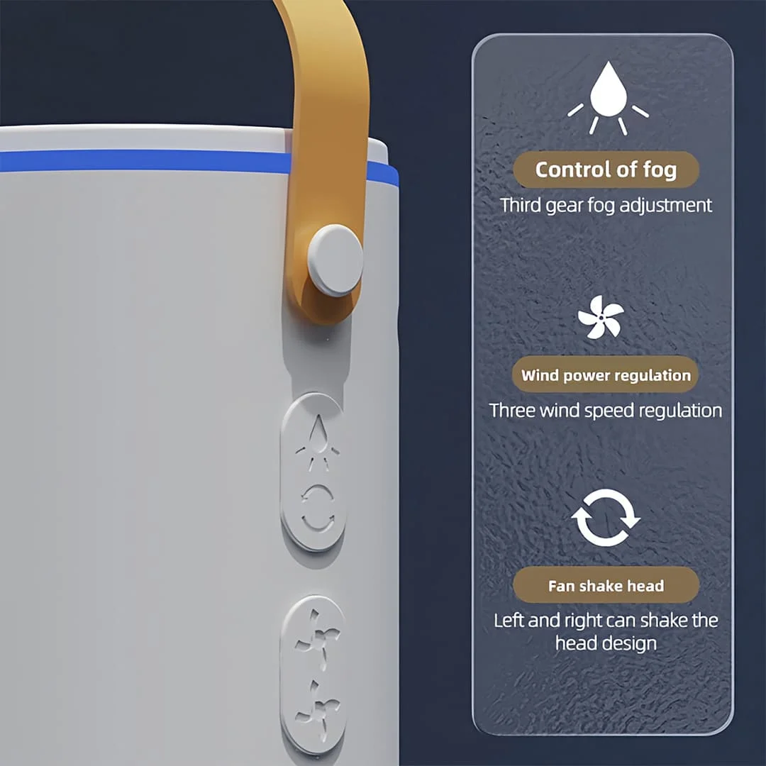 Experience refreshing airflow and cooling mist with the Mini Double Head Mist Fan, a compact yet powerful cooling device designed for personal comfort. This portable fan combines dual fan heads, humidifier mist spray, and LED lighting, making it ideal for hot days at home, work, or while traveling.