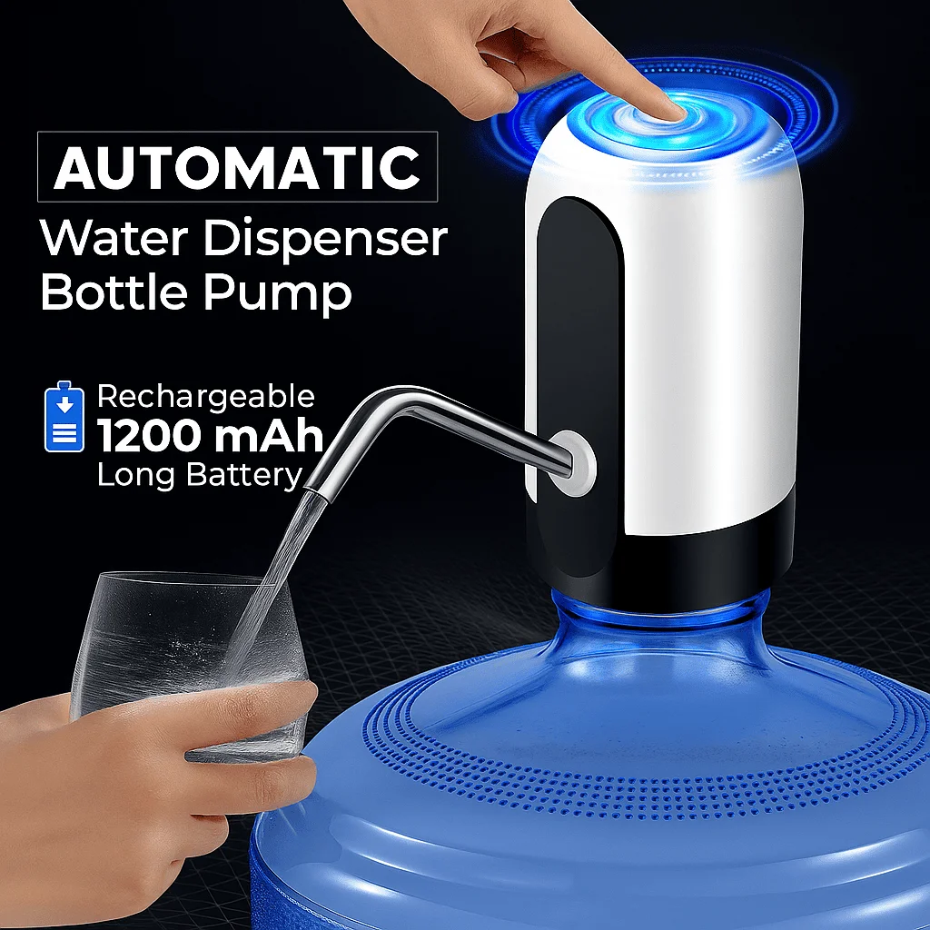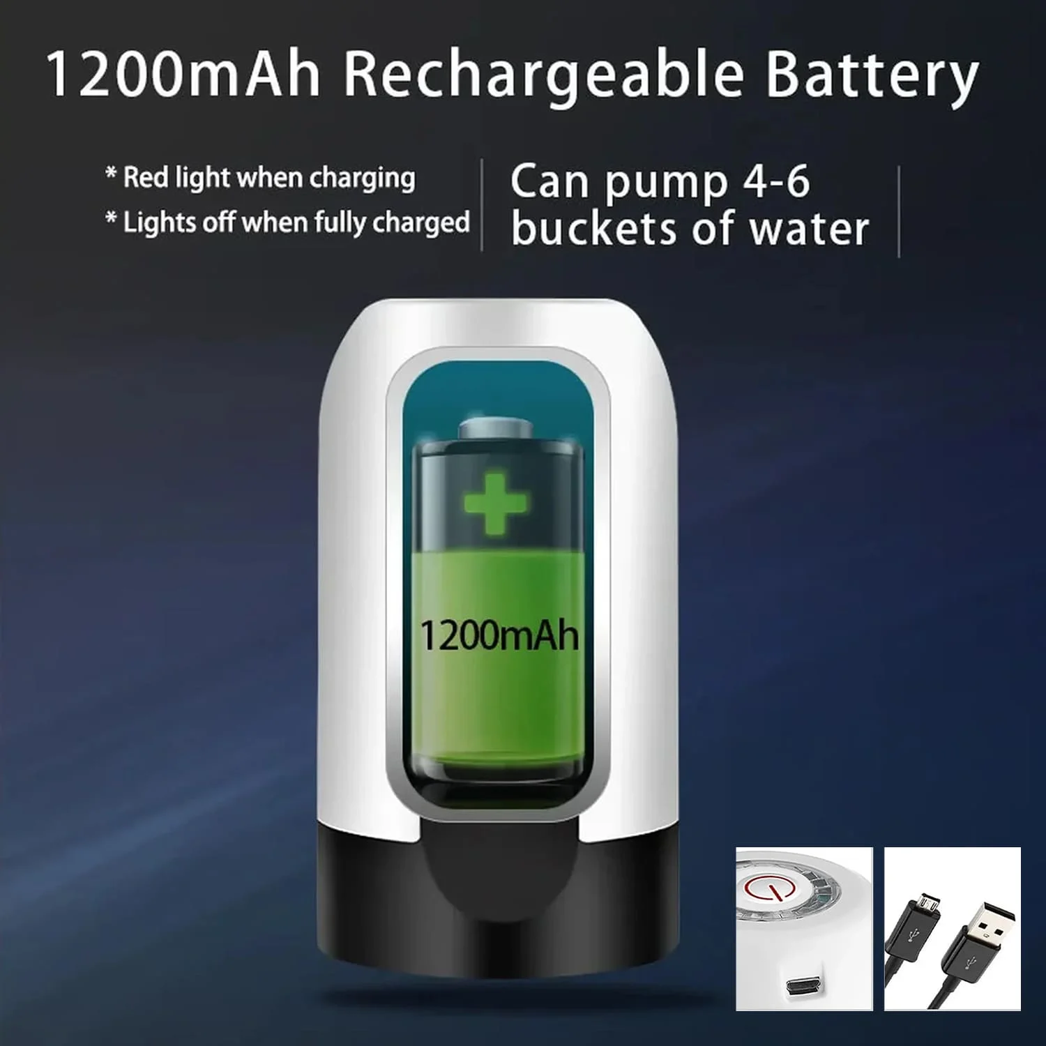 Say goodbye to heavy lifting and manual water pumps with the Portable Electric Automatic Water Pump. Designed for convenience and hygiene, this wireless dispenser fits standard bottled water sizes from 4.5 L up to 18.9 L. Its one-key operation ensures quick water dispensing, while the built-in 1200 mAh rechargeable battery provides up to 4–6 full barrel pumps per charge.