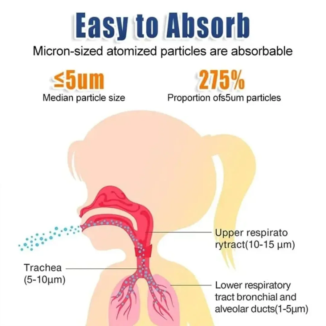 Lightweight and portable, weighing only 400g, this nebulizer is perfect for home use, travel, or daily respiratory care. Its quiet operation ensures comfortable use for kids and adults alike, while the included masks and mini inhaler make it suitable for all age groups. Built with durable medical-grade materials, it offers safe, reliable, and long-term performance for respiratory support.