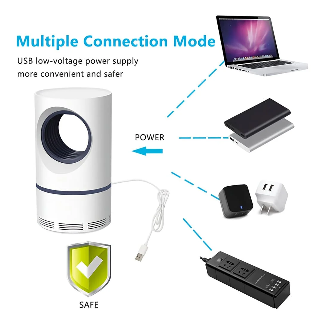 The Portable USB Mosquito Killer Lamp is a safe, silent, and chemical-free solution to protect your home and surroundings from mosquitoes and flying insects. Designed for family and pet safety, this insect trap works without chemicals, radiation, smoke, or unpleasant odors—ensuring a healthy and non-toxic environment.