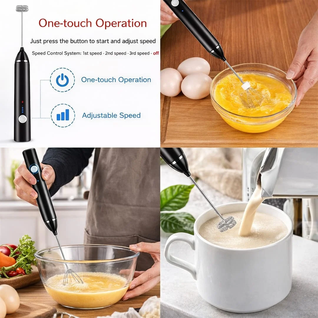 • 3-Speed Adjustable Whisking – Control frothing and mixing intensity