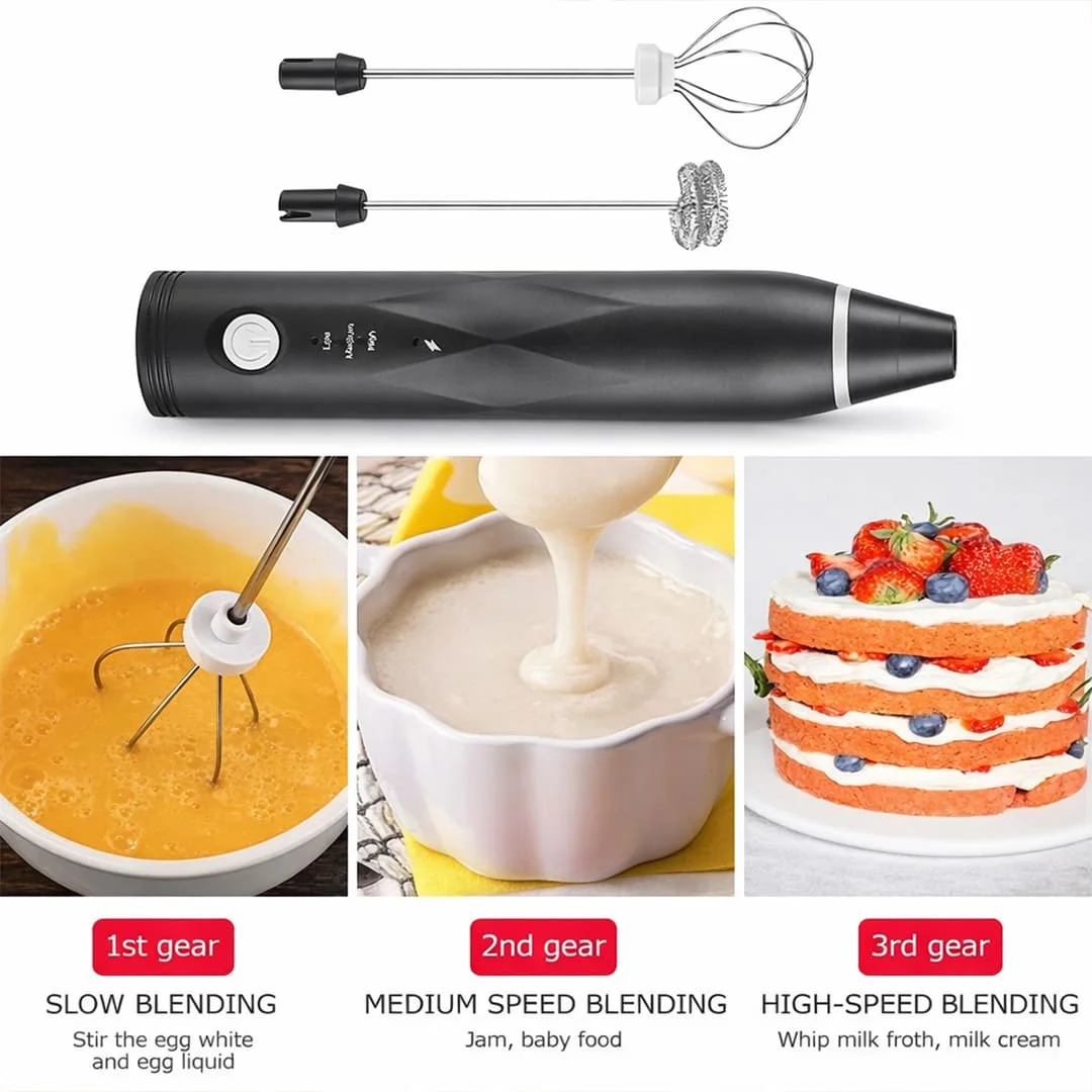 • Multi-Purpose Use – Coffee frother, egg beater, protein shake mixer & mini blender