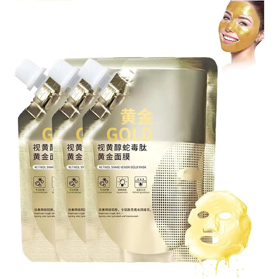 Revitalize and nourish your skin with the Retinol Snake Venom Peptide Gold Mask, a premium 100g skincare treatment designed to hydrate, brighten, and improve the appearance of aging skin. Infused with retinol, snake venom peptide complex, and gold essence, this advanced formula helps reduce the look of fine lines, improve skin elasticity, and promote a smooth, youthful glow. Its deeply moisturizing yet lightweight texture helps balance excess oil while keeping skin soft and refreshed, making it suitable for all skin types, including sensitive skin.