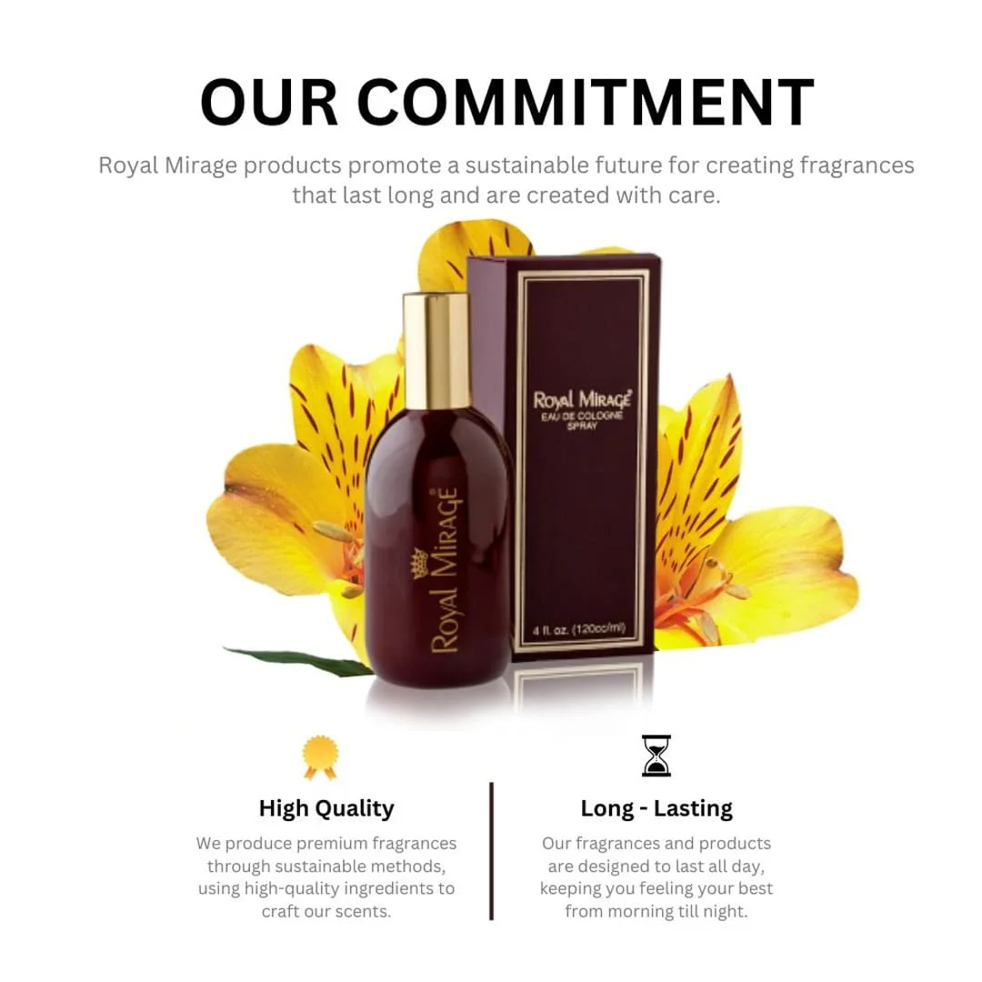 Encased in a sleek 120ml spray bottle, Royal Mirage offers convenient application and long-lasting performance. Its timeless fragrance profile makes it ideal for everyday use while maintaining a touch of luxury and sophistication.