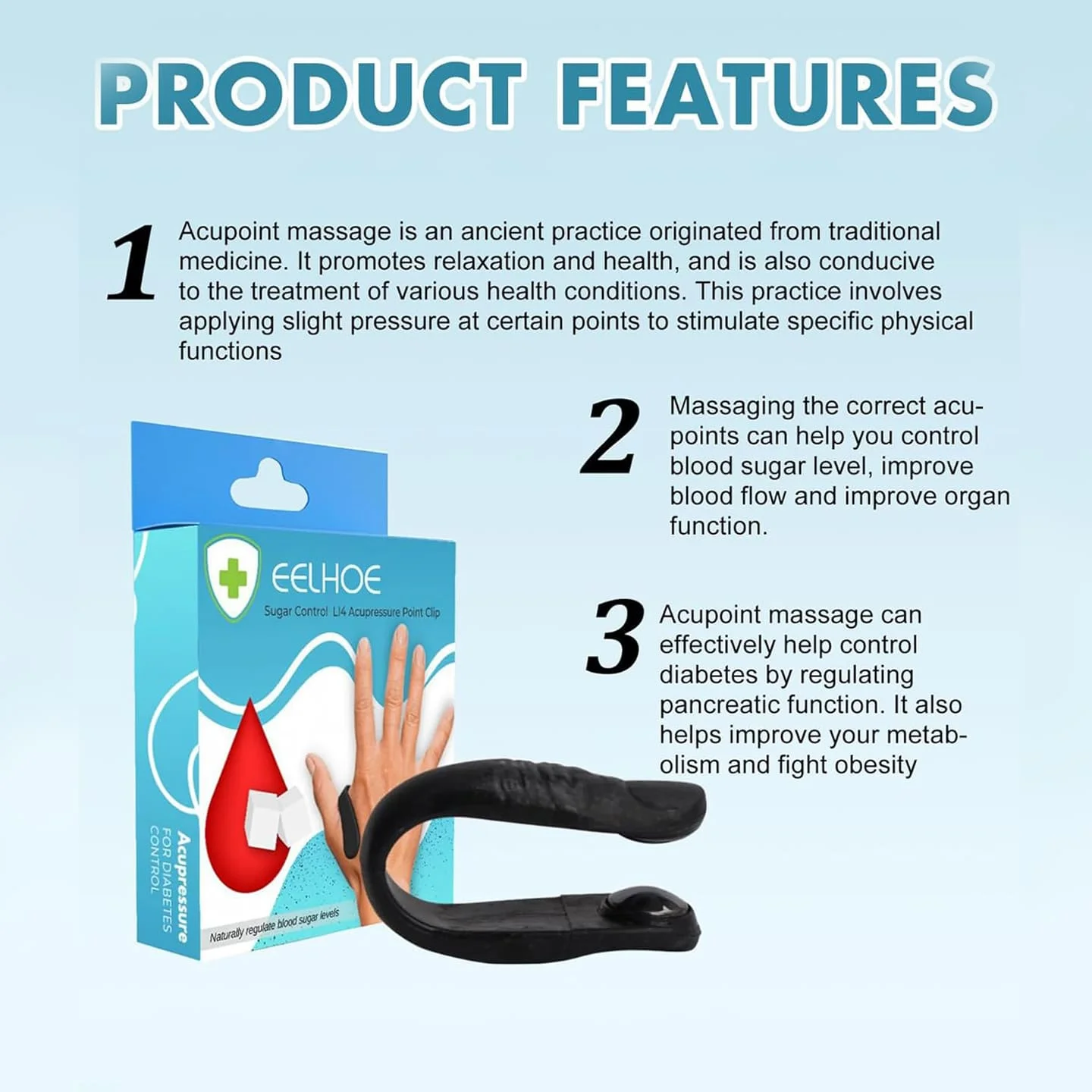 Experience the calming power of acupressure with the Sugar Control LI4 Acupressure Hand Clip, a simple yet effective way to promote relaxation, relieve stress, and support overall wellness.