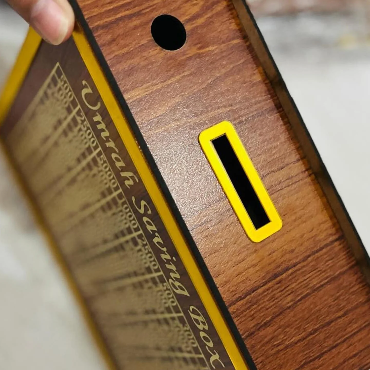 Turn your dream of performing Umrah into reality with the Umrah Saving Box — a beautifully crafted wooden saving tool that combines faith, discipline, and daily motivation.