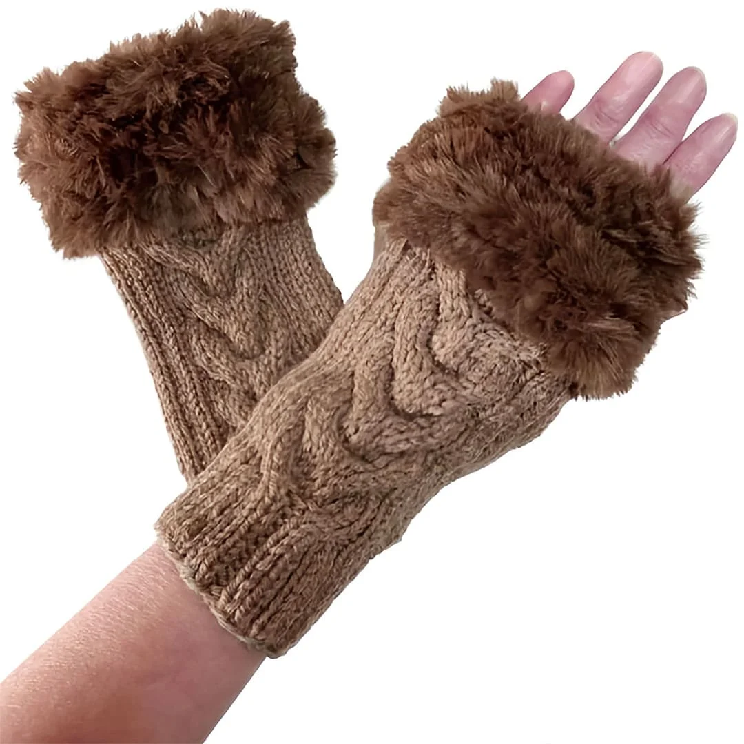 Women’s Faux Fur Fingerless Knitted Gloves – Warm Winter Wrist Hand Warmers for Women & Girls